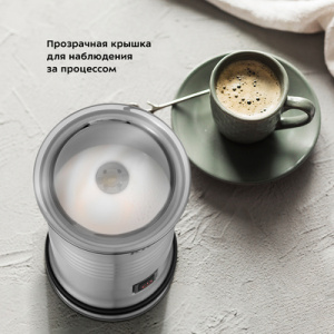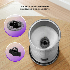 Капучинатор КТ-7409 создан для приготовления молочной пенки для напитков на базе эспрессо - капучино, латте и латте макиато. Прибор работает в трёх режимах - вспенивание с подогревом, смешивание с подогревом и вспенивание без подогрева. Капучинатор достаточно наполнить нужным количеством молока и выбрать режим. Устройство автоматически отключается, когда процесс вспенивания выполнен. Также вы можете остановить процесс приготовления вручную. Насадка для смешивания используется для перемешивания молока во время его подогрева, а также для смешивания жидкостей и приготовления какао. Насадка для вспенивания с пружиной подходит для получения молочной пенки. Через прозрачную крышку вы можете наблюдать за процессом приготовления идеальной молочной пенки. Подставка с центральным контактом даёт возможность располагать на ней капучинатор в любом положении 360