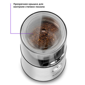 Кофемолка КТ-7123 предназначена для помола кофейных зёрен и измельчения специй. В чаше для кофе установлен нож с двумя лезвиями для качественного помола зёрен кофе. Кофемолка проста в эксплуатации - она включается при нажатии на кнопку. Пока вы держите кнопку нажатой, устройство продолжает работать. При отпускании кнопки прибор отключится. Устройство включится только при правильно установленной крышке. Поверните по часовой стрелке до фиксации так, чтобы выступ на крышке нажал на защитный переключатель, который находится на моторном блоке. Кофемолка укомплектована двумя прозрачными крышками. Полностью разборная конструкция позволяет легко и быстро очистить кофемолку. На дне есть специальные прорезиненные нескользящие ножки, которые придают прибору устойчивость во время работы.