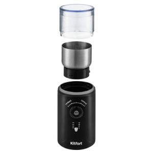 Полезное устройство. Мощная кофемолка КТ-747 с электронным управлением предназначена для помола кофейных зёрен и измельчения специй и орехов. Это несложное в использовании устройство обязательно пригодится любителю кофе! Электронное управление. Прибор оснащён регуляторами степени помола и количества чашек. Кнопка включения расположена на регуляторе степени помола. Защитный механизм не позволит включить кофемолку, если крышка установлена неправильно. Универсальность. В чаше установлен двухлезвийный нож-дробилка для эффективного измельчения зёрен кофе, специй или орехов. Ничего лишнего! Кофемолка укомплектована съёмной чашей из нержавеющей стали и прозрачной крышкой, а на дне есть специальные прорезиненные нескользящие ножки.