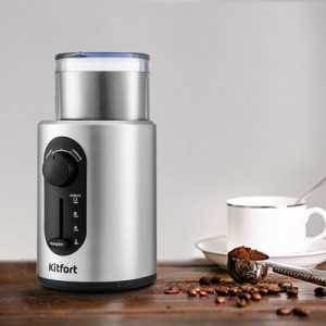 Полезное устройство. Мощная кофемолка КТ-748 с электронным управлением предназначена для помола кофейных зёрен и измельчения специй и орехов. Это несложное в использовании устройство обязательно пригодится любителю кофе! С заботой о вас. Кнопка включения расположена на корпусе около чаши. Защитный механизм не позволит включить кофемолку, если крышка установлена неправильно. Электронное управление. Прибор оснащён регуляторами степени помола и количества чашек. Универсальность. В чаше установлен двухлезвийный нож-дробилка для эффективного измельчения зёрен кофе, специй или орехов. Ничего лишнего! Кофемолка укомплектована съёмной чашей из нержавеющей стали и прозрачной крышкой, а на дне есть специальные прорезиненные нескользящие ножки.