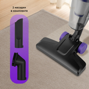 Вертикальный пылесос КТ-5190 удобен при локальной и генеральной уборке. Он компактен, всегда под рукой и готов к работе, а также легко трансформируется в ручной пылесос. К напольной щётке можно присоединить щётку для мытья пола. К ней крепится тряпка для пола, на которую подаётся вода из резервуара. Управление пылесосом очень простое и интуитивно понятное. Переключатель включает и выключает устройство. Встроенный ручной пылесос легко извлекается из корпуса вертикального пылесоса и будет полезен для локальной уборки в труднодоступных местах. Пылесос оборудован современным циклонным фильтром, обеспечивающим хорошую очистку, при этом сила всасывания не зависит от наполненности пылесборника. Съёмный пылесборник на 0,6 л. выполнен из прозрачного пластика. Насадка для влажной уборки крепится на заднюю часть щётки для пола и служит прекрасным дополнением к вертикальному пылесосу.