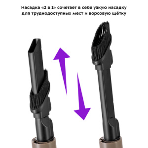 Вертикальный пылесос ''2 в 1'' Kitfort КТ-5252 – беспроводное устройство для локальной и генеральной уборки. В комплекте к пылесосу идёт набор из насадок для разных случаев уборки - будь то матрас или узкая щель в батарее. Прибор имеет 3 уровня всасываемой мощности и наглядную индикацию на передней панели. Насадка ''2 в 1'' сочетает в себе узкую насадку для труднодоступных мест и ворсовую щётку. Напольная щётка пылесоса вращается в 2-х плоскостях, способствуя более качественной уборке в любых уголках. Пылесос оснащён манёвренной напольной щёткой, которая вращается в двух плоскостях. Она оснащена светодиодной подсветкой для комфортной уборки. Вместительный контейнер пылесборника ёмкостью 450 мл легко открывается и вытряхивается. Пылесос занимает мало места при хранении, может легко вписаться в узкий коридор или комнату, заполонённую различными предметами.