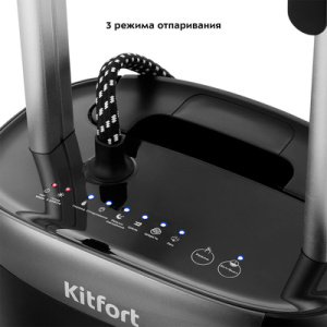 Два режима работы. Отпариватель Kitfort КТ-937 имеет подогреватель пара в утюжке и может работать в режимах глажки и отпаривания. Утюжок оснащен поворотным механизмом, позволяющим развернуть рабочую поверхность на 90 Стоит уверенно. Две телескопические стойки придают конструкции дополнительные жесткость и устойчивость. Вместо утюга. Прибор оснащен гладильной доской. Гладильная доска сделана из материала, хорошо пропускающего пар, и оснащена механизмом наклона с фиксированными положениями 0, 30, 60 и 90 Многофункциональный. Прибор может отпаривать в 3 режимах для различных типов тканей.