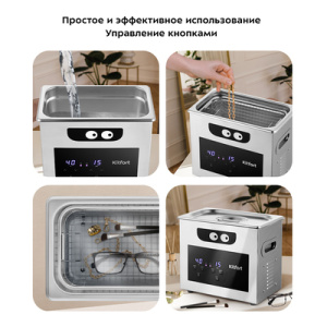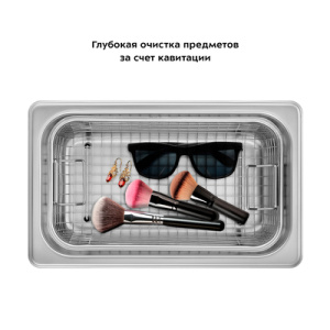 Ультразвуковая мойка КТ-6293 поможет эффективно очистить и процезинфицировать небольшие изделия из металла, пластика и стекла. Кавитация - это явление, когда в жидкости за короткое время образуются и тут же разрушаются пузырьки воздуха. Соприкасаясь с поверхностью обрабатываемых вещей, они разрываются, создавая множество ударных волн. Так происходит глубокая очистка предметов. Налейте воду в мойку и положите в неё ювелирные украшения и т.д., а также включите прибор. Можно включить только нагрев, только УЗ-чистку или и нагрев, и чистку одновременно. Можно выбрать время работы 5—30 минут с шагом 5 минут, после которого мойка автоматически отключается, и температуру нагрева воды 20-80 С с шагом 5 С. Благодаря большому размеру вы можете очищать более крупные предметы или много небольших предметов за 1 раз. В качестве жидкости в ультразвуковой мойке можно использовать воду.