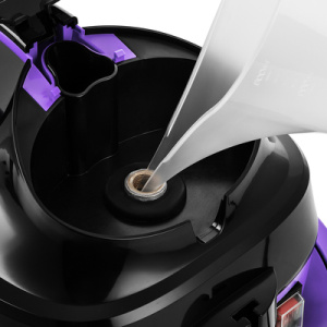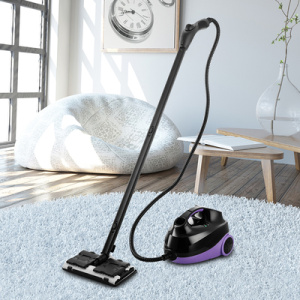Kitfort КТ-9103 способен заменить паровую швабру, дезинфектор, стеклоочиститель, отпариватель. Скребок для стекла используется для чистки окон, зеркал, кафеля. Струйная насадка подходит для чистки плинтусов, щелей и других углов. Щётки - для удаления стойких загрязнений. С тряпкой можно отпаривать одежду, шторы, мягкую мебель. В комплект входят также щётка для пола, тряпка, рамка для чистки ковров, удлинительные трубки. Управление располагается на паровом пистолете. Предусмотрен блокиратор от случайного нажатия или для включения непрерывной подачи пара. На корпусе есть кнопка включения/выключения, индикаторы готовности пара и отсутствия воды. В комплекте с пароочистителем идёт мерный стакан. Ёмкость составляет 1,5 л. Длина шнура 2,8 м. Излишки вы всегда можете намотать на держатель шнура. Паровой пистолет можно убирать в специальное отверстие на передней части корпуса пароочистителя.