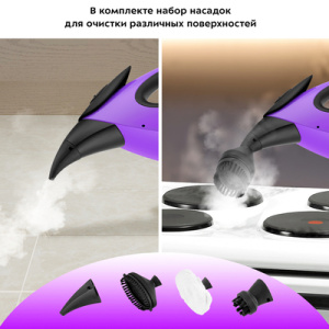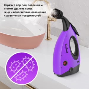 Пароочиститель КТ-9139 — многофункциональный прибор, способный заменить дезинфектор, стеклоочиститель и отпариватель. Кнопка ''Вкл/Выкл'' включает и выключает устройство. Чтобы начать подачу пара, необходимо сдвинуть блокиратор в нижнее положение и зажать кнопку подачи пара. Зажмите кнопки снятия резервуара и потяните резервуар в сторону от устройства. Залейте чистую воду комнатной температуры в резервуар и закройте его крышкой. Присоедините резервуар к пароочистителю до щелчка. Ёмкость резервуара для воды составляет 300 мл. Струйная насадка может использоваться для очистки плинтусов, щелей между плитками. Круглая нейлоновая щётка используется для удаления стойких загрязнений. Ворсовая насадка предназначена для очистки одежды от грязи и шерсти домашних животных.
