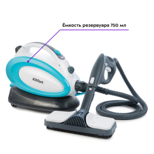 Универсальный помощник. Пароочиститель Kitfort КТ-914 — многофункциональный аппарат, способный заменить паровую швабру, дезинфектор, стеклоочиститель и отпариватель для тканей. Используя силу горячего пара, пароочиститель очищает полы стены и другие поверхности. Большой набор насадок. Для вашего удобства предусмотрен отсек для хранения насадок, расположенный под пароочистителем. Портативный прибор. Пароочиститель имеет малый вес и габариты. Его можно использовать как дома, так и в офисах, гостиницах. При хранении не занимает много места. Имеет удобную складную ручку для переноски. Безопасность. В случае возникновения в бойлере избыточного давления предохранительный клапан, встроенный в крышку бойлера, стравит пар, пока давление не опустится до безопасного уровня.