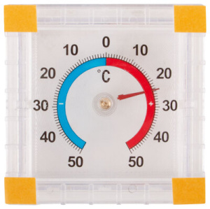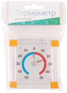 ТББ. Термометр оконный биметаллический квадратный. Принцип работы основан на свойстве пружины, изготовленной из разнородных металлов изменять и восстанавливать форму под действием температуры. От -50 до +50 С. Уп - пакет.