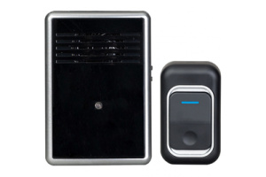 Звонок беспроводной Трио 32 мелодии, дальность 150 м, с регулятором громкости, настольно-настенный, 4-тональная полифония, брызгозащищенная кнопка IP44, 3ААх1,5В