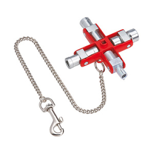 00 11 06 Универсальный ключ для систем запирания в электротехнике, в сетях газо- и водоснабжения, в технике вентиляции и кондиционирования, промышленности, инженерных системах здания и т.д.. 9 различных ключей в одном блоке из цинкового литья. со съемной цепочкой и карабином. длина общая - 90 мм. карта самообслуживания/ блистер. - Диапазон профиля квадрат - 5,0/ 6,0/ 7,0-8,0/ 9,0-10,0mm - Диапазон профилей ключа с двумя бородками - 3?–?5mm - Захватывающая способность - полумесяц - 6mm - Диапазон профиля трехгранник - 7,0/ 8,0-9,0/ 10,0-11,0mm
