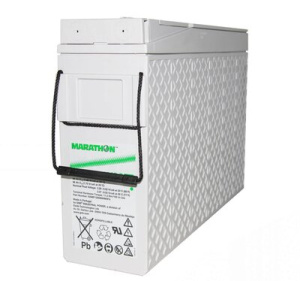 Фронт-терминальный аккумулятор Marathon M12V190FT спроектирован для установки в специальные стойки и стеллажи, а также обладает высокой плотностью энергии (190 Ач, 12 В). Батарея может использоваться в циклическом и буферном режимах. При соблюдении правил эксплуатации срок службы может достигать 12 лет. Материал корпуса — долговечный пластик, на крышке расположен клапан избыточного давления. Фронт-терминальное расположение клемм заметно упрощает и удешевляет обслуживание. Технология AGM позволяет удерживать жидкий электролит неподвижно.