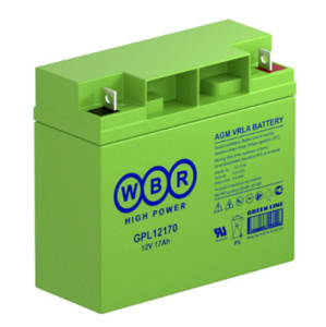 Свинцово-кислотный аккумулятор WBR GPL 12170 емкостью 17 Ач, напряжением 12 В может использоваться как в циклическом, так и в буферном режиме. Главной особенностью батареи является продолжительный срок службы — при правильном использовании он может достигать 12 лет. Ударопрочный корпус из ABS-пластика надежно герметизирован, что вместе с технологией AGM полностью исключает протечку электролита. Аккумулятор WBR GPL 12170/GPL12180 необслуживаемый, а значит на протяжении всего периода использования долив электролита не требуется.