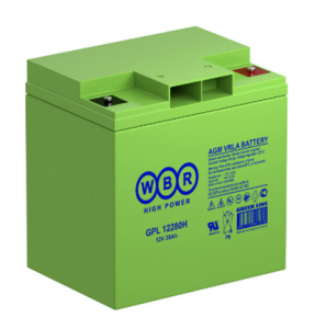 Аккумуляторная батарея WBR серии GPL 12280H - герметизированные, выполненные по технологии AGM, свинцово-кислотные аккумуляторные батареи общего применения с увеличенным 12 летним сроком службы в буферном режиме или 260 циклов заряда-разряда в циклическом режиме при 100% разряде. Эти высокоэффективные перезаряжаемые батареи не требуют обслуживания в течение всего срока службы.