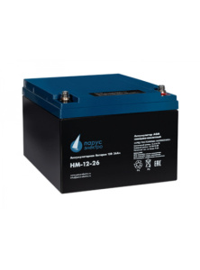 Свинцово-кислотная аккумуляторная батарея HM-12-26 по технологии AGM для циклического режима работы. Применяется в различных системах бесперебойного питания, требовательных электрических приборах (насосах и котлах систем отопления), аварийном энергоснабжении, переносных приборах, а также в стационарных системах с резервным питанием. Электролит заключен в сепараторах между пластин и всегда остается неподвижным, что позволяет эксплуатировать АКБ в любом положении. Напряжение - 12 В, ёмкость - 26 Ач.