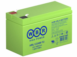 Аккумуляторные батареи WBR HRL1234W - герметизированные, выполненные по технологии AGM, батареи общего применения с увеличенным до 12 лет сроком службы в буферном режиме или 450 циклов заряда-разряда в циклическом режиме при 50% разряде. Эти высокоэффективные перезаряжаемые батареи не требуют обслуживания в течение всего срока службы.