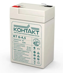 Бюджетная свинцово-кислотная герметизированная аккумуляторная батарея Контакт КТ 6-4.5, с напряжением 6 В, емкостью 4.5 Ач. Технология изготовления AGM с абсорбированным электролитом в стекловолоконном сепараторе, идеальны для использования в охранно-противопожарных, а также мелком слаботочном оборудовании (фонари, ККМ, весы). Необслуживаемая VRLA батарея производителя Контакт оптимальна для использования как в циклическом, так и в буферном режиме, но буферный режим эксплуатации более предпочтителен. Расчетный срок службы 3-5 лет.