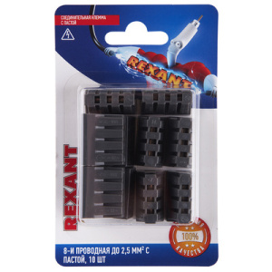 Экспресс-клемма с пастой СМК 773-308, 8-проводная до 2,5 кв мм серая, 10 шт, REXANT