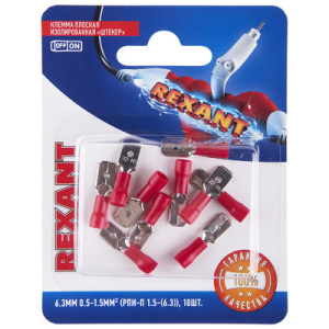 Клемма плоская изолир РПи-п 1.5-(6.3) РпИп 1,25-6-0,8 штекер 6.3 мм 0.5-1.5 кв мм, красный, 10 шт, REXANT
