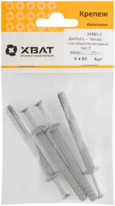 Дюбель-гвоздь 6х60 грибовидный бортик, нейлон (4шт)