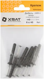 Дюбель-гвоздь 6х40 потайной бортик, полипропилен (6шт)