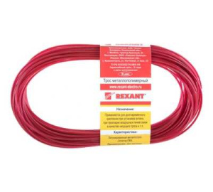 Трос стальной в ПВХ оплетке d=2,0 мм, красный ( моток 20 м) REXANT
