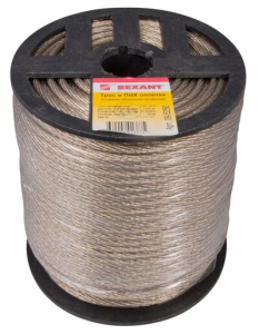 Трос стальной в ПВХ оплетке d=5,0 мм, прозрачный (бухта 100 м) REXANT