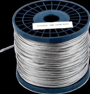 Трос стальной оцинкованный DIN 3055 средняя жесткость. Изделие имеет органический сердечник, что обеспечивает гибкость и сравнительно небольшую растяжимость под нагрузкой. Используется для фиксации грузов, прокладки воздушных кабельных трасс и других хозяйственных нужд.