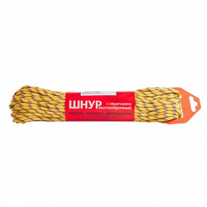 Шнур плетеный ПП 6 мм с серд., 16-пряд. высокопр., цветной, 20 м