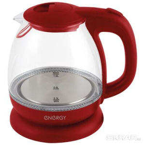 Чайник ENERGY E-296 (1 л) стекло, пластик цвет красный
