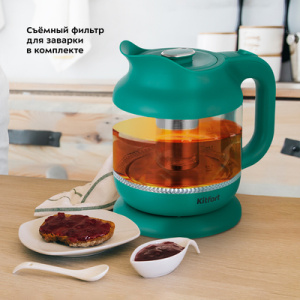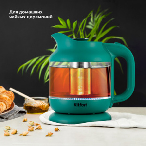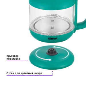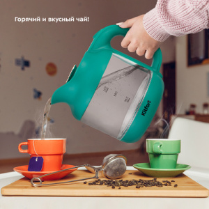 Стильный электрический чайник КТ-6663 за счет своей необычной формы и цвета украсит вашу кухню! За один раз в чайнике можно вскипятить до 1,2 л воды. В комплекте к чайнику идёт съёмный чаезаварочный механизм. Заваривайте чай прямо в чайнике - нагрейте воду, засыпьте заварку в фильтр и установите его в чайник. Съемная крышка и большое горлышко чайника облегчают доступ внутрь при его мойке и во время удаления накипи. Кнопка включения находится на ручке. При включении чайника загорается подсветка чайника, которая является индикатором работы. Снизу имеется отсек для хранения шнура, в который можно смотать излишки шнура электропитания, чтобы он не мешал на столе. Длина шнура 0,6 м. Различные сорта чая (зелёный, чёрный, белый, улун, травяной) можно заваривать непосредственно в самом чайнике, пользуясь фильтром.