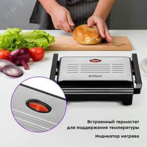 Универсальный помощник на вашей кухне. Бутербродница КТ-3604 предназначена для приготовления бутербродов, панини, сэндвичей, тостов, жарки сосисок и овощей. Разнообразие блюд теперь обеспечено! Комфортное использование. Бутербродница оснащена термостатом для поддержания температуры панелей, а также индикатором нагрева. Противоскользящие ножки не дают прибору скользить по столу во время готовки. Два режима конструкции. Конструкция бутербродницы позволяет готовить в 2 режимах - двустороннем и одностороннем. В двустороннем прибор закрывается так, что продукты готовятся с 2 сторон. В одностороннем режиме крышка откидывается на 180 Антипригарное покрытие. На панели нанесено антипригарное покрытие, что позволяет готовить с минимальным количеством масла или без него. Такое покрытие также облегчает процесс чистки панелей.