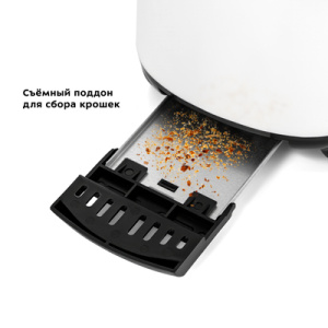 Компактный тостер КТ-6207 - это незаменимая вещь для любителей ароматного и хрустящего поджаренного хлеба, чтобы приготовить горячие бутерброды, сэндвичи, бейглы, хлебцы для закусок, салатов и других блюд. Тостер оснащён поворотным регулятором степени обжаривания и кнопкой ''Стоп'', которая позволяет отключить приготовление раньше автоматического отключения. Загруженные тосты автоматически центрируются, чтобы их обжарка с 2 сторон была равномерной. Благодаря широким слотам можно обжаривать толстые куски хлеба, половинки круассанов, бейглов и другие хлебобулочные изделия. В нижней части корпуса тостера расположен съёмный поддон для сбора крошек. Просто выдвиньте его и выбросите скопившиеся крошки, а остатки соберите салфеткой. На дне корпуса тостера имеется отсек для хранения шнура, в который можно смотать излишки шнура электропитания, чтобы он не мешал на столе.