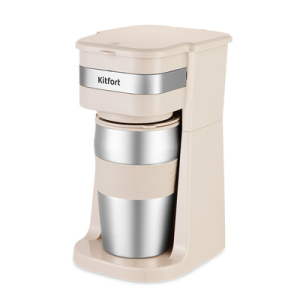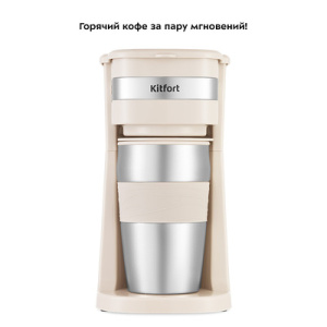 Капельная кофеварка КТ-7317 готовит ароматный черный кофе из молотого кофе одним нажатием кнопки. Компактная кофеварка экономит место на кухне. Чтобы запустить работу прибора, нажмите на кнопку ''Старт''. Загорится индикатор и кофеварка начнёт работу. Для получения ароматного кофе рекомендуется перемалывать кофейные зёрна непосредственно перед завариванием. Термокружка выполнена из нержавеющей стали с силиконовой вставкой, которая не даст вам обжечься или выронить из рук термокружку. Крышка термокружки позволяет пить кофе на ходу, благодаря удобной форме отверстия для питья, которое можно закрывать. В кофеварке горячая вода медленно поступает в фильтр с молотым кофе. Многоразовым фильтром можно пользоваться любое количество раз. Сетка фильтра изготовлена из нейлона. Фильтр вмещает 20 грамм молотого кофе, а резервуар для воды имеет ёмкость 420 мл.