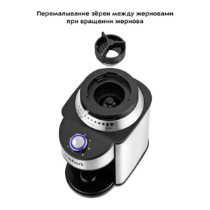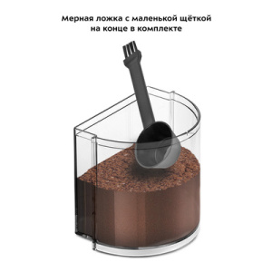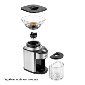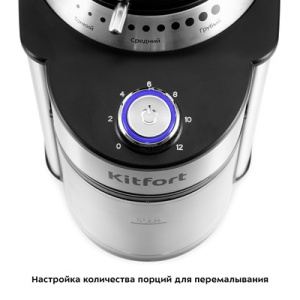 Жерновая кофемолка КТ-7202 предназначена для помола кофейных зерен. КТ-7202 даёт равномерный помол и позволяет настроить его степень - от мелкого — для эспрессо, до крупного — для кофе во френч-прессе. При помоле в жерновой кофемолке кофе не перегревается, как это происходит в роторных кофемолках. Вы можете выбрать, какое количество зёрен требуется смолоть за один раз (1–12 порций). Кофемолка смелет нужное количество кофе и автоматически отключится. Контейнеры для молотого кофе и для зёрен съемные и закрываются крышками. Кофемолка оснащена переключателями безопасности - она не включится, если контейнер для зёрен не установлен или установлен не правильно (не закрыта крышка, не закреплён). В случае перегрева мотора сработает защита от перегрева и отключит его. В комплекте предусмотрена мерная ложка с маленькой щёткой на конце для чистки жерновов.