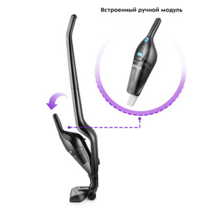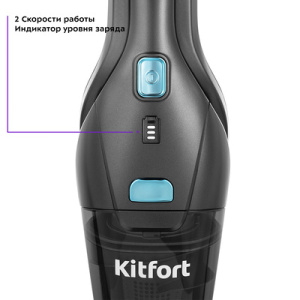 Беспроводной вертикальный пылесос Kitfort КТ-5161 - удобное устройство при уборке дома. Вертикальный пылесос КТ-5161 оснащён светодиодной подсветкой для комфортной уборки. При помощи манёвренной щётки, уборка в труднодоступных местах становится необычайно простой. Пылесос комплектуется турбощёткой, которая качественно очищает гладкие поверхности и ковровые покрытия с коротким ворсом. В комплекте прилагается докстанция для зарядки и установки пылесоса в вертикальном положении. Кнопки управления удобно расположены на вертикальном и ручном модуле. Управление пылесосом осуществляется всего одним нажатием. Вы всегда будете видеть уровень заряда, чтобы вовремя закончить уборку или знать, когда пылесос будет полностью заряжен. Пылесос оборудован современным циклонным фильтром, обеспечивающим хорошую очистку воздуха от пыли.