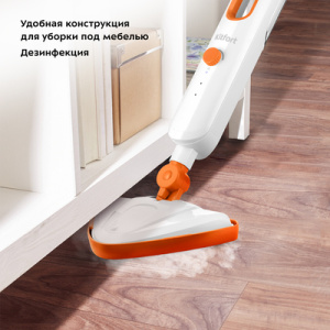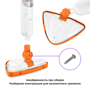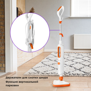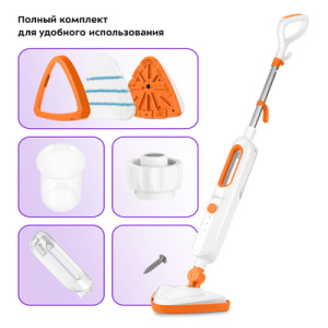 Паровая швабра КТ-1048 — универсальное устройство, которое поможет избавиться от пыли и грязи. Плавная регулировка уровня подачи пара позволяет настраивать интенсивность работы устройства. Это очень удобно при очистке разных типов поверхностей с разным уровнем загрязнения. Напольная щётка закреплена на специальном шаровом шарнире с наклоном в двух плоскостях. Во время работы парогенератора вода из резервуара проходит через специальный фильтр. Резервуар для воды ёмкостью 360 мл. Конструкция удобно разбирается. В комплекте идут рамка для ковра, мерный стакан, 2 тряпки для пола, удлинительная трубка, ручка, шуруп для фиксации насадки и резервуар для воды с крышкой. Комплектацией швабры предусмотрена рамка, она крепится на щётку и тряпку. Паровая швабра КТ-1048 обладает функцией вертикальной парковки. На удлинительной ручке предусмотрены держатели для шнура. Длина шнура – 4,9 м.