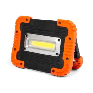 Источник света - 1 светодиод COB. Яркость светового потока - 400 лм. Дальность - 200 м. Время непрерывной работы - 15 часов. Прочный пластиковый корпус дополнительной 'обшивкой' по сторонам. Степень защиты - IPX4. 1 режим работы - полная яркость. Поворотная подставка для установки фонарика в шести различных положениях или подвешивания. Прочный пластиковый корпус с резиновыми бамперами. Корпус, бамперы и подставка имеют ребра жесткости. Прочная конструкция минимизирует возможность поломки при падении. Прорезиненная кнопка включения слегка утоплена в корпус, что исключает возможность самопроизвольного включения при переноске фонаря в сумке или рюкзаке. Возможность использования фонаря в качестве аварийного или предупреждающего. Питание - 4 батарейки AA (в комплект не входят). Вес (без батарей) - 390 г. Габариты - 173х127х50 мм