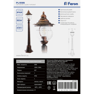 Светильник садово-парковый, 60W 230V IP44 коричневый, PL596