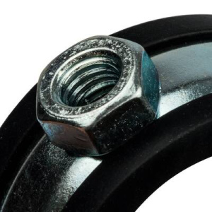 Хомут с гайкой применяется для фиксации труб на вертикальных и горизонтальных поверхностях. Фиксация производится с помощью резьбовой шпильки и стального анкера. Изделие может эксплуатироваться для газовых линий, в холодном и горячем водоснабжении.