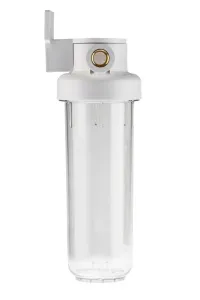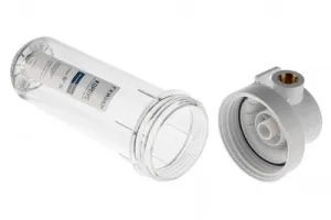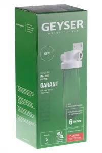 Корпус фильтра Гейзер Гарант 1/2'' 10SL рассчитан на работу под давлением и установку на входе в систему холодного водоснабжения. Выполнен из суперпрочного пластика ПЭТ пищевого класса, который обладает повышенной стойкостью к механическим повреждениям. Используется с картриджами стандарта Slim Line 10''. Присоединительный размер 1/2''. Латунные вставки выдерживает превышение норм давления в 6 раз.