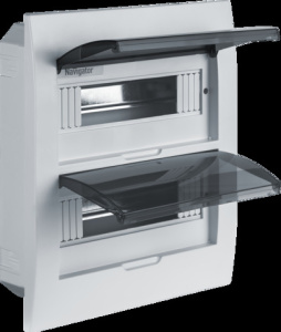 Боксы распределительные ЩРН(В)-П (щиты распределительные навесные (встраиваемые) пластиковые) Navigator серии NSS-DBW(I) предназначены для установки модульного оборудования управления, защиты и контроля (автоматические выключатели, устройства защитного отключения, таймеры, счетчики, реле и т.д.), а также его защиты от внешнего воздействия и несанкционированного доступа. Применяются внутри жилых, офисных, производственных и промышленных помещений.
