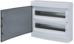 Корпуса пластиковые серии «Unix IP40» предназначены для сборки силовых распределительных и слаботочных щитов. На DIN-рейки устанавливается модульное оборудование. На монтажные платы - антенные разветвители, Wi-Fi роутеры, патч-панели и иное слаботочное оборудование. Щиты устанавливаются на поверхность стены. Ассортимент корпусов с din-рейками представлен размерами вместимостью до 72 модулей, по 12 или 18 модулей в ряду, с белой глухой или прозрачной тонированной дверью, с DIN-рейками или перфлорированными монтажными платами. Особенностью корпусов является плоское основание, упрощающее сборку и подключения внутри, лицевая панель Корпуса изготовлены из качественного глянцевого ABS-пластика, имеют минималистичный дизайн и впишутся в большинство интерьеров.