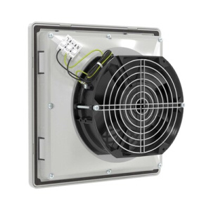 Вентиляторы RV изготовлены в России. Они обладают высоким качеством и надежностью, могут применяться даже в тяжелых условиях эксплуатации. Возможна работа на вдув или на выдув, благодаря простой смене направления вращения. Изготовлены из устойчивого к УФ и не поддерживающего горение АБС-пластика и поликарбоната. Допустима установка на улице без навеса. Степень защиты IP54, опционально повышение до IP56. Монтаж осуществляется без использования инструмента при помощи защелок (опционально можно зафиксировать винтами, например, при вибрационных нагрузках). В комплекте - воздушный фильтр с возможностью быстрой замены без инструмента. Внешние размеры 325х325 мм, размер монтажного выреза 292х292 мм. Номинальный воздушный поток при 50 Гц составляет 560 м3/ч, с учетом вентиляционной решетки - 447 м3/ч. Цвет - светло-серый, RAL 7035.