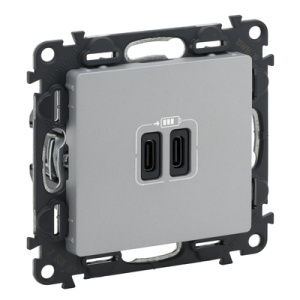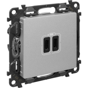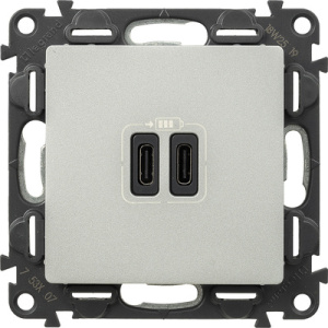 Valena LIFE.Зарядное устройство с двумя USB-разьемами тип С-тип С 240В/5В 3000мА.С лицевой панелью.Цвет Алюминий
