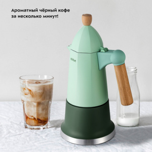 Гейзерная кофеварка КТ-7154 поможет приготовить вам ароматный чёрный кофе. Она компактная и простая в использовании. Кофеварка идеально подойдёт для приготовления кофе в домашних условиях или на даче. В резервуар наливают воду и устанавливают воронку с фильтром, куда добавляют молотый кофе. Сверху накручивается резервуар для кофе. Далее кофеварку помещают на плиту. С гейзерной кофеваркой нет необходимости следить за поднятием пенки, а получаемый кофе не содержит гущи. КТ-7154 рассчитана на приготовление 6 чашек кофе по 40 мл. Гейзерная кофеварка КТ-7154 подходит для использования на газовых, электрических и инфракрасных плитах. Рекомендуется включать плиту на среднюю мощность при заваривании кофе. Дождитесь, когда кофеварка остынет, и разберите её на составные части. Для этого открутите резервуар для кофе от резервуара для воды. Вытащите воронку с фильтром и вытряхните кофейный жмых.