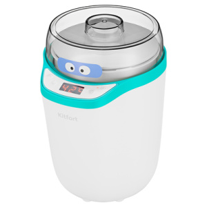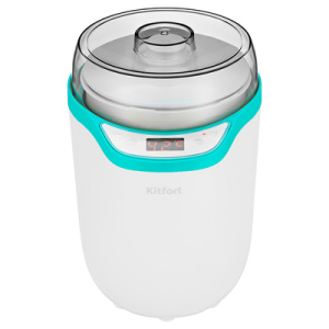 Йогуртница КТ-2077 предназначена для приготовления вкусного и полезного домашнего йогурта. Смешайте молоко и закваску в контейнере, установите контейнер в йогуртницу, выберете подходящую программу или выставьте время и t, затем нажмите кнопку включения. Йогуртница равномерно нагревает контейнер с ингредиентами, поддерживая заданную температуру, и автоматически отключает нагрев по истечении заданного времени. Йогуртница имеет 6 предустановленных программ и одну программу с возможностью установки времени приготовления с шагом 1 час в диапазоне 1-99 часов и температуры с шагом 1 С в диапазоне 25-65 С. Прибор укомплектован 2 контейнерами на 1,8 ли 1,6 л с крышкой, в которых йогурт можно хранить в холодильнике. В комплекте также есть сито для приготовления греческого йогурта, творога или сыра. Все части легко разбираются, моются и компактно хранятся.