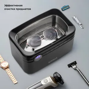 Ультразвуковая мойка КТ-6291 поможет эффективно продезинфицировать небольшие изделия из металла, пластика и стекла. Ультразвуковая очистка — способ очистки поверхности твёрдых тел в жидкости, при котором в жидкость вводятся ультразвуковые колебания. Главное преимущество ультразвуковых моек — это возможность очищать предметы сложных форм. Вы можете выбрать время работы 90, 180, 280, 380 или 480 секунд, после которого мойка автоматически отключается. Кнопками ''Дегазация'',''Мощно'' и ''Мягко'' выбирают режим работы. Мягкая очистка рекомендуется для хрупких предметов. Мощная очистка используется для сильных загрязнений. Благодаря большому размеру КТ-6291 вы можете очищать более крупные предметы. Корпус прибора сделан из пластика, а резервуар, в который помещаются предметы для очистки, — из нержавеющей стали.