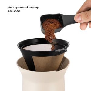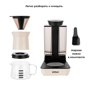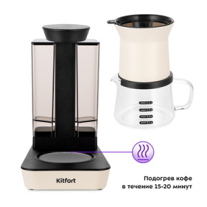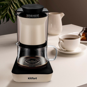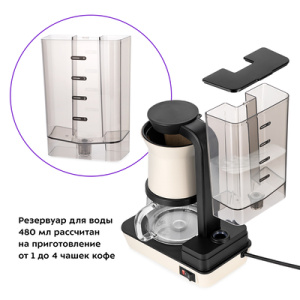 Капельная кофеварка КТ-7190 готовит ароматный чёрный кофе из молотого кофе. В капельной кофеварке вода нагревается, после чего медленно поступает в фильтр с молотым кофе. Ёмкость резервуара для воды 480 мл. Кофеварка рассчитана на приготовление 1, 2, 3 или 4 чашек кофе. Резервуар кофейника ёмкостью 0,4 л позволяет за один раз приготовить кофе на 4 чашки ёмкостью 100 мл. Корпус кофейника прозрачный, поэтому вы всегда можете контролировать процесс приготовления. Кофе будет поступать из воронки в кофейник, если воронка будет установлена на крышку кофейника. По окончании приготовления кофеварка перейдёт в режим подогрева. Платформа с подогревом, на которой стоит кофейник с готовым кофе, будет горячей в течение 15-20 минут, затем кофеварка выключится.