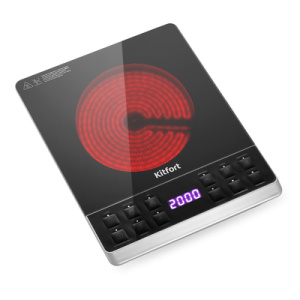 Инфракрасная плита KT-139 практична и экономична. В отличие от индукционных плит, инфракрасные плиты не имеют импульсного режима. Нагрев происходит постоянно даже на самых минимальных мощностях. Плитка имеет 5 автоматических программ - жарка, кипячение, суп, макароны, молоко, и 1 базовую, где вы можете самостоятельно настроить необходимый нагрев до 2000 Вт, таймер до 24 часов. Для инфракрасной плиты Kitfort KT-139 подходит практическая любая посуда, однако рекомендуется использовать посуду с плоским дном и диаметром 12-18 см. Плита выдерживает вес не более 10 кг. На обратной стороне плиты встроен вентилятор, который охлаждает устройство во время интенсивной работы и после её завершения. Плита оборудована противоскользящими ножками, которые придают ей устойчивое положение на любых поверхностях.