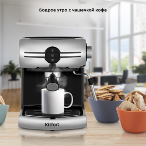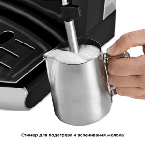 Рожковая кофеварка КТ-7257 поможет приготовить кофе эспрессо, капучино или латте, а также множество других видов кофе на ваш вкус. На передней панели управления расположены кнопки. Такие как запуск нагрева бойлера, приготовление кофе с постоянным проливом и подача пара для нагрева кофе или вспенивания молока. Молочную пенку для капучино можно делать самостоятельно. Капучинатор в кофеварке - это паровая трубка с насадкой панарелло. Трубку погружают в холодное молоко, включают подачу пара и взбивают молочную пенку. На платформе можно хранить темпер или ставить чашки, чтобы они были тёплыми или лучше сохли после мытья. На платформе удобно размещать чашки во время приготовления молочной пены. Поддон для сбора капель со съёмной решёткой из нержавеющей стали легко снимается, моется и устанавливается обратно. В поддоне установлен специальный поплавок.